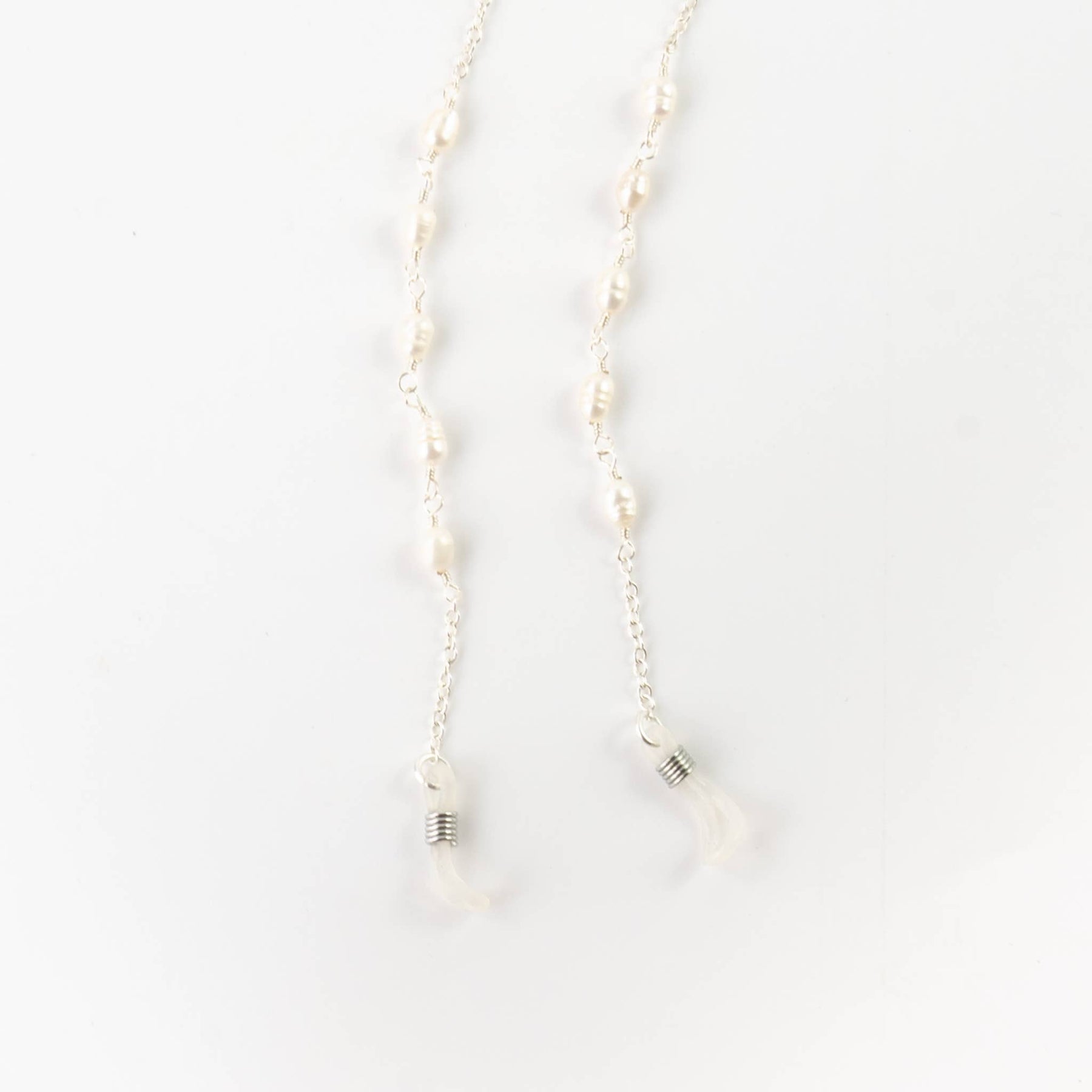Handmade with real freshwater pearls, this dainty glasses chain is a subtle way to dress up your everyday essentials. Lightweight and easy to wear, it keeps your glasses close while adding a touch of detail to your look. A thoughtful gift for her and a practical piece you’ll use again and again. Simply attach the rubber loops to the arms of your glasses, slip the chain over your head like a necklace and you’re ready to go. • Handmade with real freshwater pearls, silver or 18ct gold plated copper alloy and rubber loops • Measures approx. 65 cm in length • Inspired by Bali • Packaged in biodegradable or recyclable materials