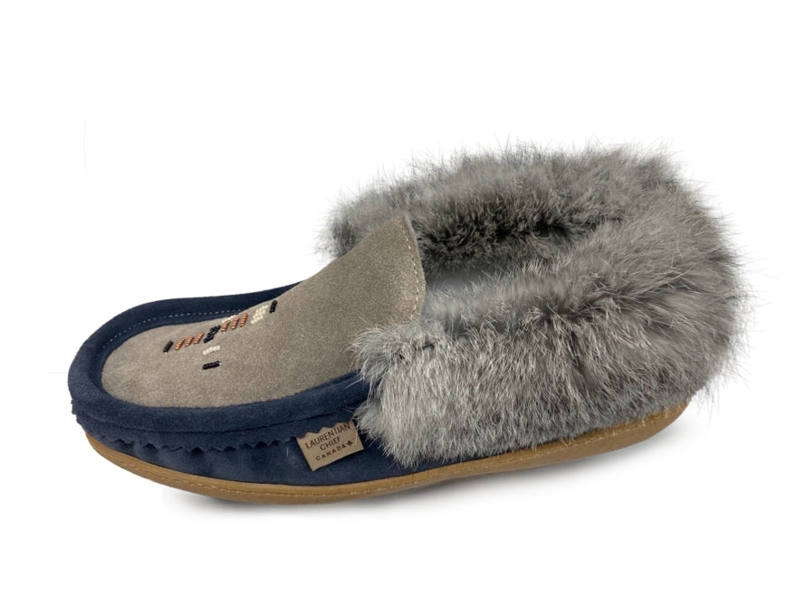 Men's Fur Trim/Lined Beaded Slippers- Blue/Grey