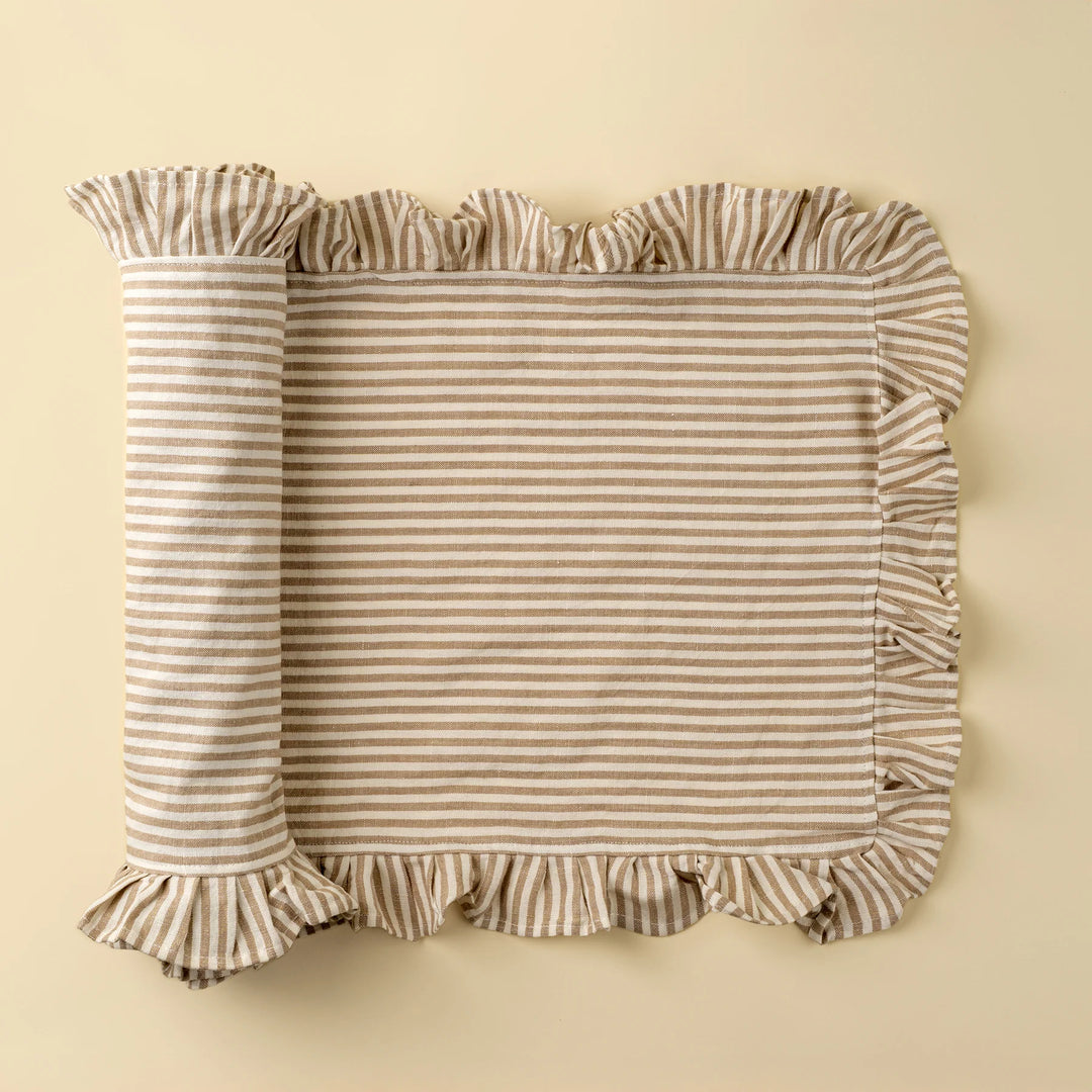 Ruffle Thin Stripe Table Runner - Beige