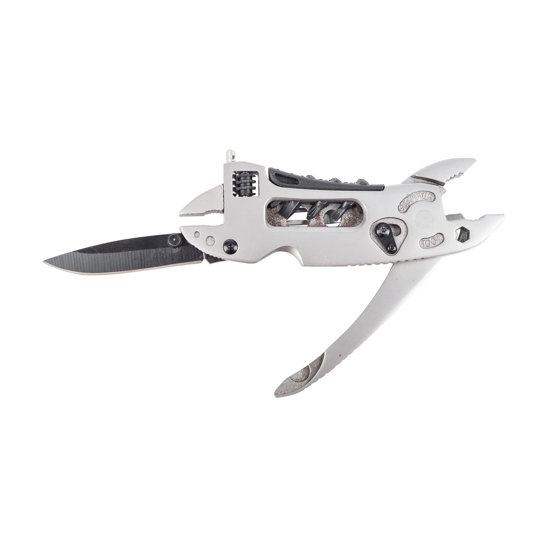 The Mad Man 9 Function Plier Tool is a purpose-built heavy duty multi-tool you can rely on out in the field. Made of 420 stainless steel and featuring a set of pliers, an adjustable wrench, knife, wire cutter, and 3 driver bits, it encompasses everything from style to preparedness to utility.