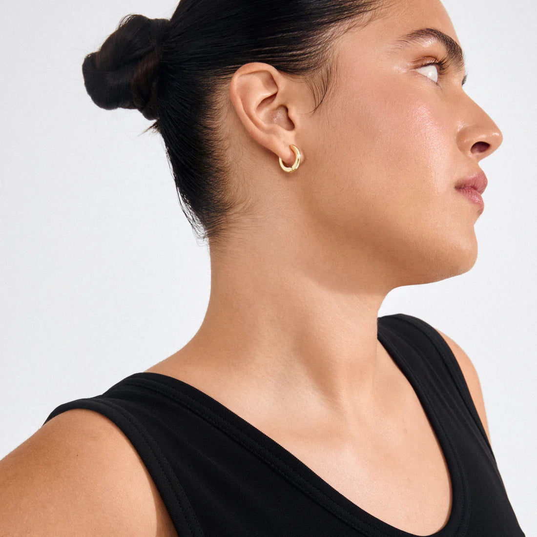 Less is more! The gold-plated TYRA huggie hoops from Pilgrim serve up a simple, classic design with a chunky silhouette that brings an effortlessly aesthetic vibe to your look. These timeless favourites are perfect worn solo for a clean statement, or mixed and matched with other hoops and studs for that personal touch. Crafted from 99% recycled materials—because it’s the little things that make a difference.