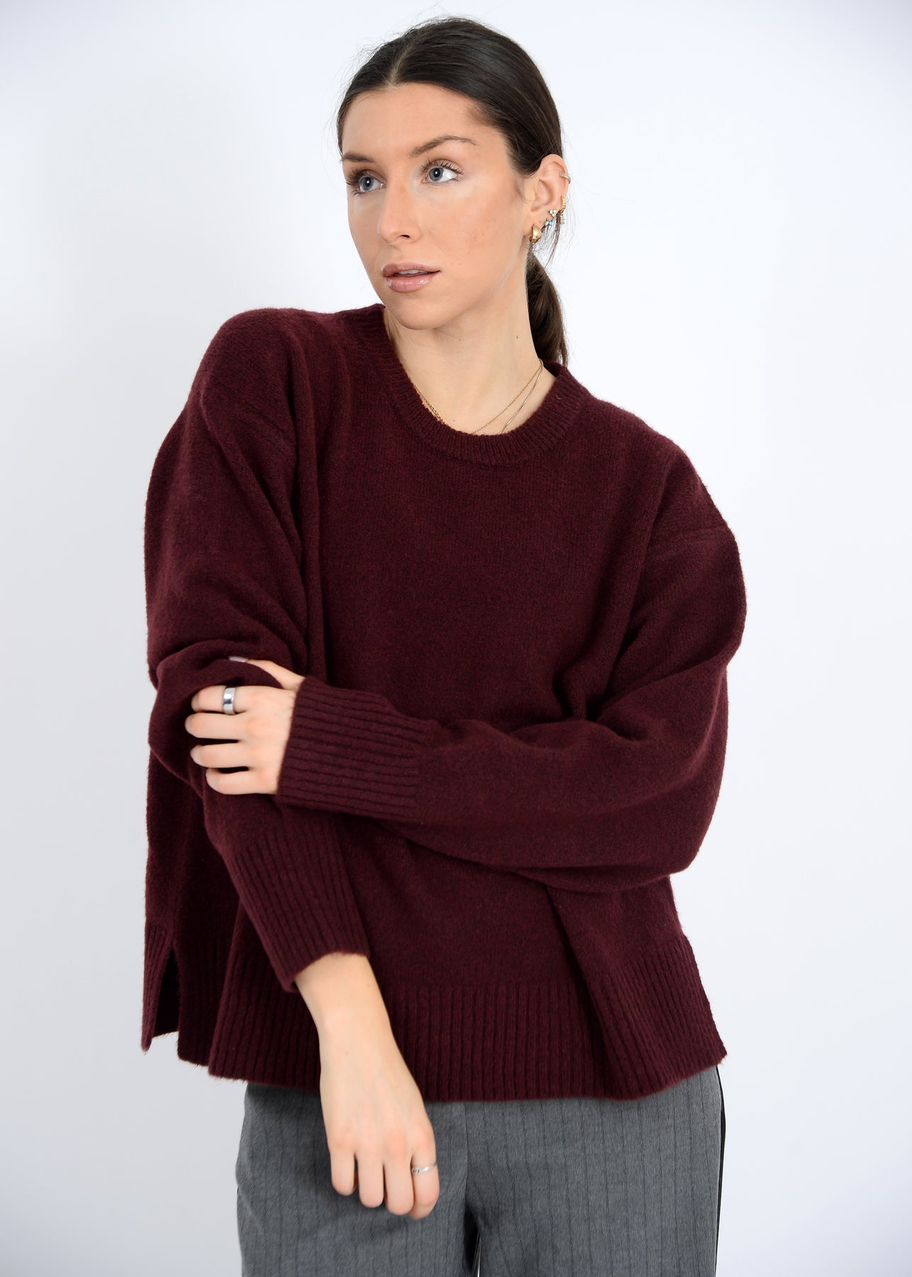 Cozy up this fall with the Manhattan Knit Sweater in a rich burgundy shade. Soft and comfy, it’s perfect for layering on crisp days or lounging in style. Add a playful pop of color to your autumn wardrobe and stay snug all season long!