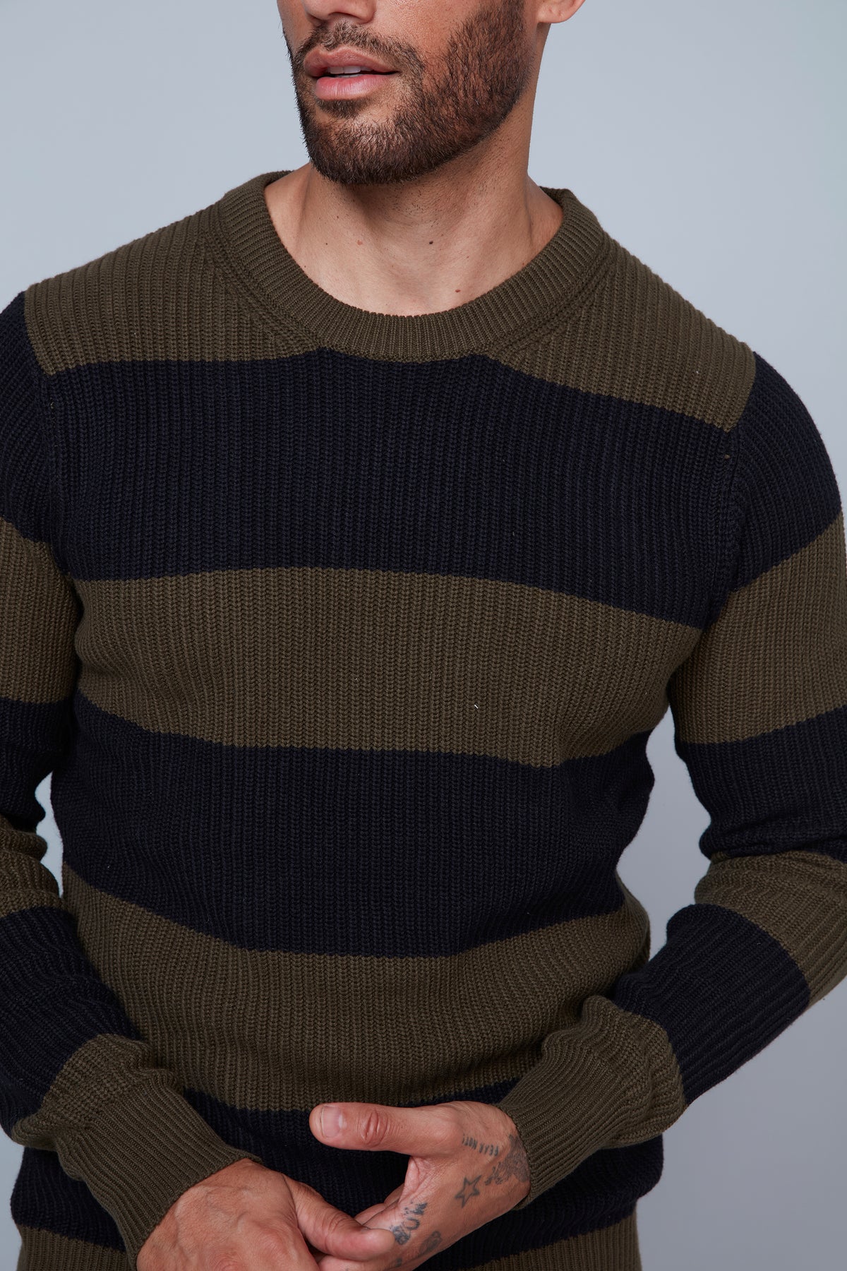 Elevate your style with our Midtown Striped Knit Sweater. This trendy piece is perfect for everyday wear and can easily be layered with a jacket for a versatile look. Stay cool and effortlessly stylish in this must-have sweater.