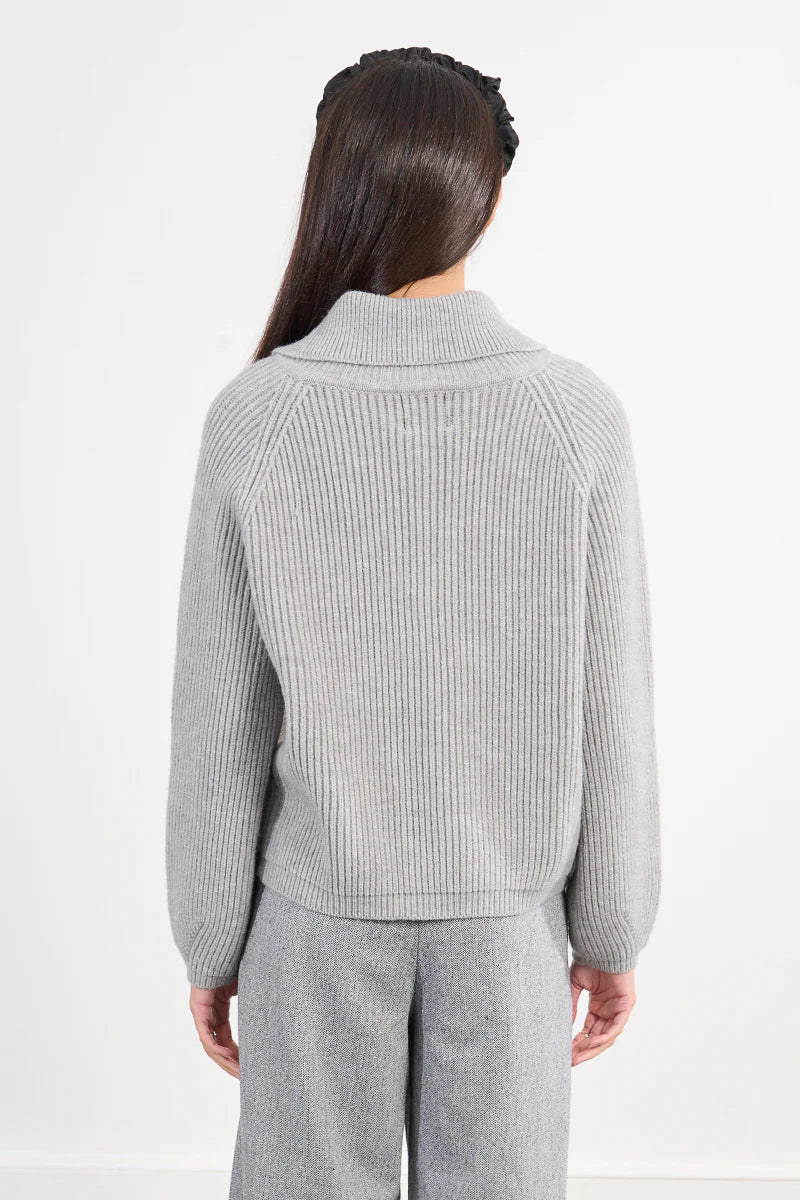 This long ribbed knit vest features full-length, gently puffed sleeves and a wide trucker collar. It has a straight fit and a front zip that runs all the way down for easy wear.