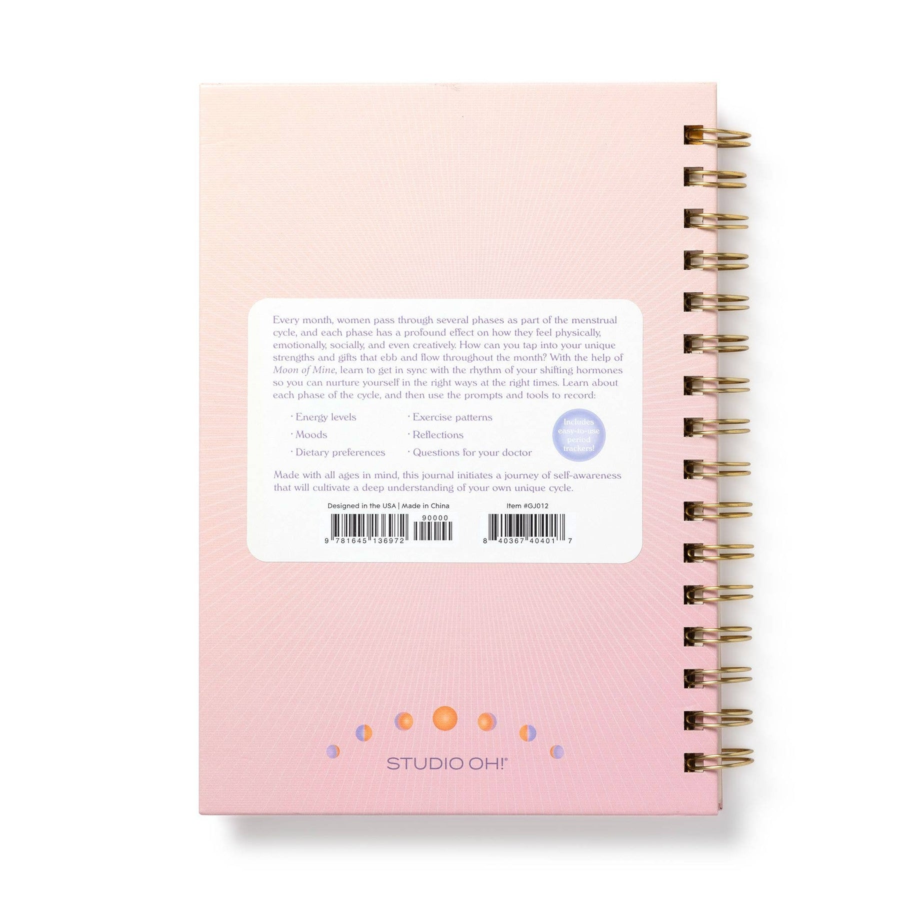 This helpful guided journal from Studio Oh! is designed to help women cultivate a deep understanding of their own unique menstrual cycle. Echoing the phases of the moon, women pass through four phases during their cycle—each with shifting hormones that affect how women feel physically, emotionally, socially, and even creatively. In this journal, you’ll find trackers and prompts for recording energy levels, moods, dietary preferences, exercise patterns, reflections, and medical concerns. You’ll also find 10 years of detailed period trackers to help women manage personal expectations and nurture themselves as needed. • Encourages self- and body-awareness by guiding women of all ages through each phase of their menstrual cycle • Features comprehensive tracking tools for recording moods, energy levels, exercise patterns, and questions for the doctor Hardcover 128 pages 5 tabbed dividers Full color throughout 6.1"w × 8.7"h (15.4 cm × 22 cm)