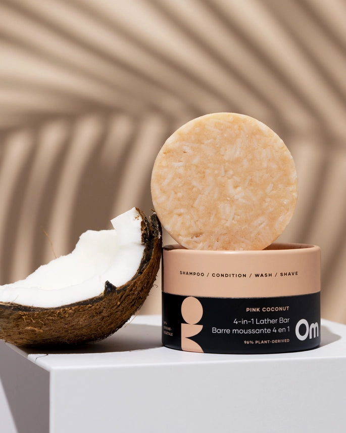 Our Pink Coconut 4-in-1 Lather Bar is an eco-friendly alternative to shampoo, conditioner, body wash and shaving cream. While this multi-purpose product replaces a multitude of products, our creamy, fluffy lather bar delivers tangle-free locks and incredibly soft skin. Don’t even get us started on the sulphate-free lather.