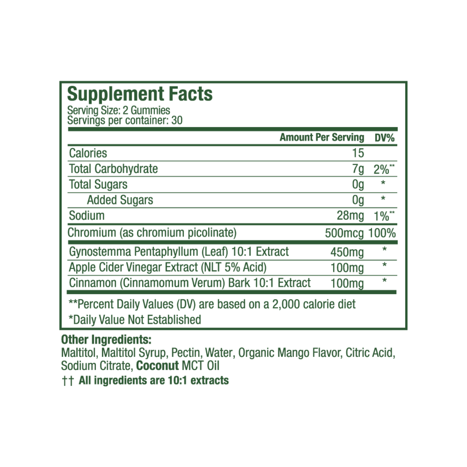 Zero-sugar, daily gummy helps to boost metabolism, curb cravings, balance blood sugar and fight belly fat by activating AMPK with the clinically-studied Gynostemma herb known as “The Immortality Herb,” Chromium, Cinnamon and Apple Cider Vinegar. 60 gummies per pouch. 30-day supply.*